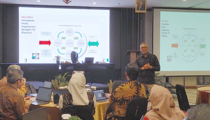 “Bukan semata-mata kita mengejar ISO, tapi bagaimana kita bisa lolos akreditasi. Itu menandakan bahwa kita betul-betul melaksanakan tuntutan perguruan tinggi, menjaga standar, mulai dari dokumen hingga implementasi, serta kapabilitas seluruh personel sebagai pengawak dari organisasi, dari universitas, itu yang terpenting.