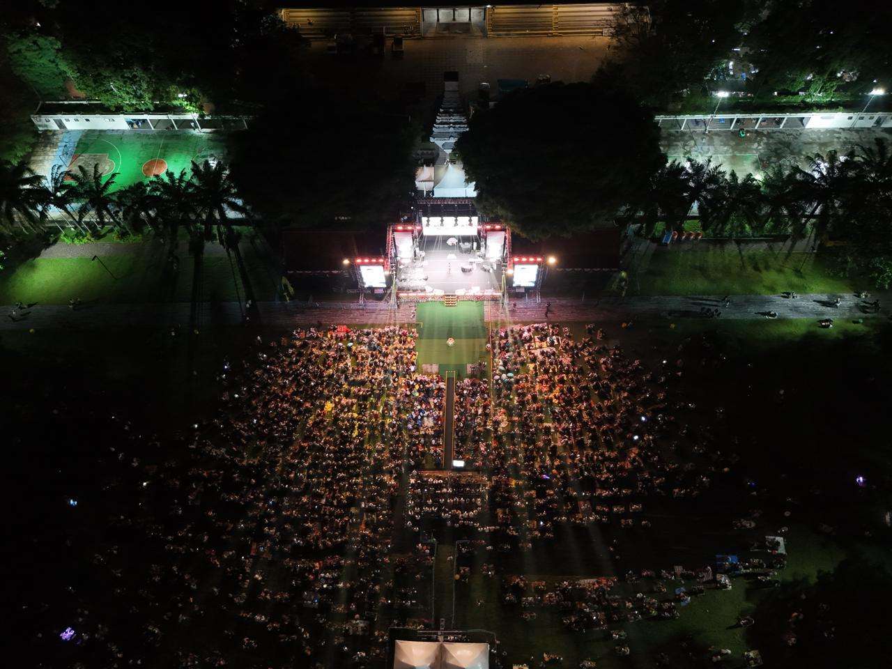 Lantunan sholawat dari Majelis Sholawat Mahabbatun Nabi menggema sepanjang acara, sebelum malam refleksi tersebut ditutup dengan penampilan musik Sabrang MDP dan Letto. (Dwi L/Humas Kota Banyuwangi)