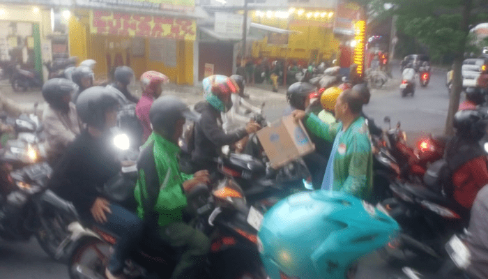 Peduli Saudara di Sumatra Relawan Ojol Surabaya Bergerak Turun ke Jalan Menggalang Donasi