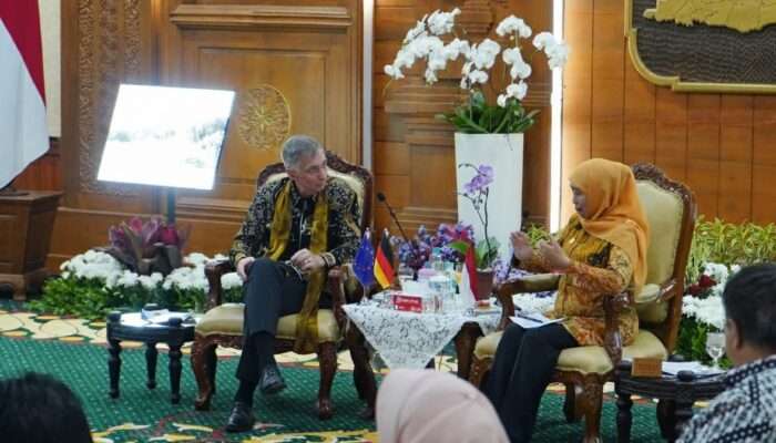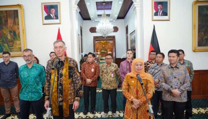 www.mediasurabayanews.com, SURABAYA — Perwakilan Delegasi Uni Eropa (EU) bersama perwakilan Pemerintah Jerman dan negara-negara anggota Uni Eropa lainnya berkunjung ke Surabaya Jawa Timur untuk bertemu dengan pemerintah provinsi dan menindaklanjuti perkembangan proyek Jalur Kereta Api Regional Surabaya, yang didanai melalui dukungan Jerman, sebagai salah satu dari tiga proyek unggulan di bawah payung inisiatif Uni Eropa yaitu Global Gateway. Delegasi diterima oleh Gubernur Jawa Timur, Khofifah Indar Parawansa, di Gedung Negara Grahadi. Selanjutnya, Delegasi mengunjungi proyek Stasiun Pasar Turi sebagai bagian dari pembangunan Jalur Kereta Api Regional Surabaya (SRRL) Fase 1 – yang menjadi proyek unggulan Global Gateway.