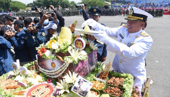 www.mediasurabayanews.com, Surabaya – Dalam rangka memperingati Hari Ulang Tahun ke-80 Tentara Nasional Indonesia (TNI), dilaksanakan upacara militer di Lapangan Sutedi Senaputra Karang Pilang, Surabaya, dengan tema TNI Prima -TNI Rakyat- Indonesia Maju, Inspektur Upacara Wakil Komandan Komando Pembinaan Doktrin, Pendidikan dan Latihan TNI Angkatan Laut (Wadan Kodiklatal). Laksda TNI Singgih Sugiarto, S.T.,M.Si. sebagai Komandan Upacara Letkol Czi Hery Kisyanto, S.Hub.Int (Dandenzibang 3/V Madiun) dan Perwira Upacara Letkol Inf Prasetya Hari Karyawan, S.H., M.H. (Kaprot Kogartap III/Sby). pada Minggu (05/10/2025).
